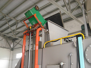 低溫?zé)峤鉅t自動(dòng)化程度很高,自動(dòng)化控制設(shè)備會(huì)全程監(jiān)控整個(gè)處理過(guò)程,無(wú)需過(guò)多的人為干涉。醫(yī)療垃圾在醫(yī)院經(jīng)過(guò)收集、分類、打包后,運(yùn)輸至醫(yī)療垃圾消納中心,通過(guò)入料口倒入醫(yī)療垃圾封閉存儲(chǔ)壓縮箱。垃圾在箱內(nèi)經(jīng)過(guò)壓縮后(水分減少15-20%)通過(guò)封閉的傳送帶進(jìn)入破碎機(jī)進(jìn)行破碎,再經(jīng)過(guò)傳送帶進(jìn)入消納爐頂部的干燥室進(jìn)行干燥和預(yù)加熱。之后,爐蓋打開(kāi),垃圾掉入爐內(nèi)三層分段式結(jié)構(gòu)中的最上層,分別經(jīng)過(guò)加熱層、燃燒層和熱解層,最后分解為灰燼掉落在爐底部,通過(guò)爐渣傳運(yùn)帶進(jìn)入廢渣處理間進(jìn)行處理。爐內(nèi)垃圾熱解所產(chǎn)生的煙氣經(jīng)排煙口進(jìn)入煙氣處理系統(tǒng)進(jìn)行無(wú)害化處理,經(jīng)過(guò)冷卻裝置、過(guò)濾裝置后從煙囪排出。