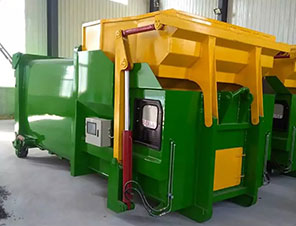 5、一種可卸式壓縮垃圾箱,由鉤臂車隨時轉(zhuǎn)場,只須供給三相電源,就能壓縮、轉(zhuǎn)運垃圾,適應(yīng)于臨時性、突出性的垃圾清理清運任務(wù)。