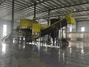 大件垃圾處理系統(tǒng)工藝流程:運輸車輛將大型物料卸在輸送帶上,然后將大型垃圾分批送入輸送帶,進入破碎篩分設(shè)備,進行破碎篩分處理。粉碎處理后經(jīng)輸送帶送至磁選機進行磁選,如鐵絲、鐵釘?shù)冉饘傥锊牧献詣臃謷鰜?,進行回收再利用;其它材料經(jīng)壓縮后經(jīng)轉(zhuǎn)運車轉(zhuǎn)運,作為燃燒物料運至電廠進行焚燒處理。